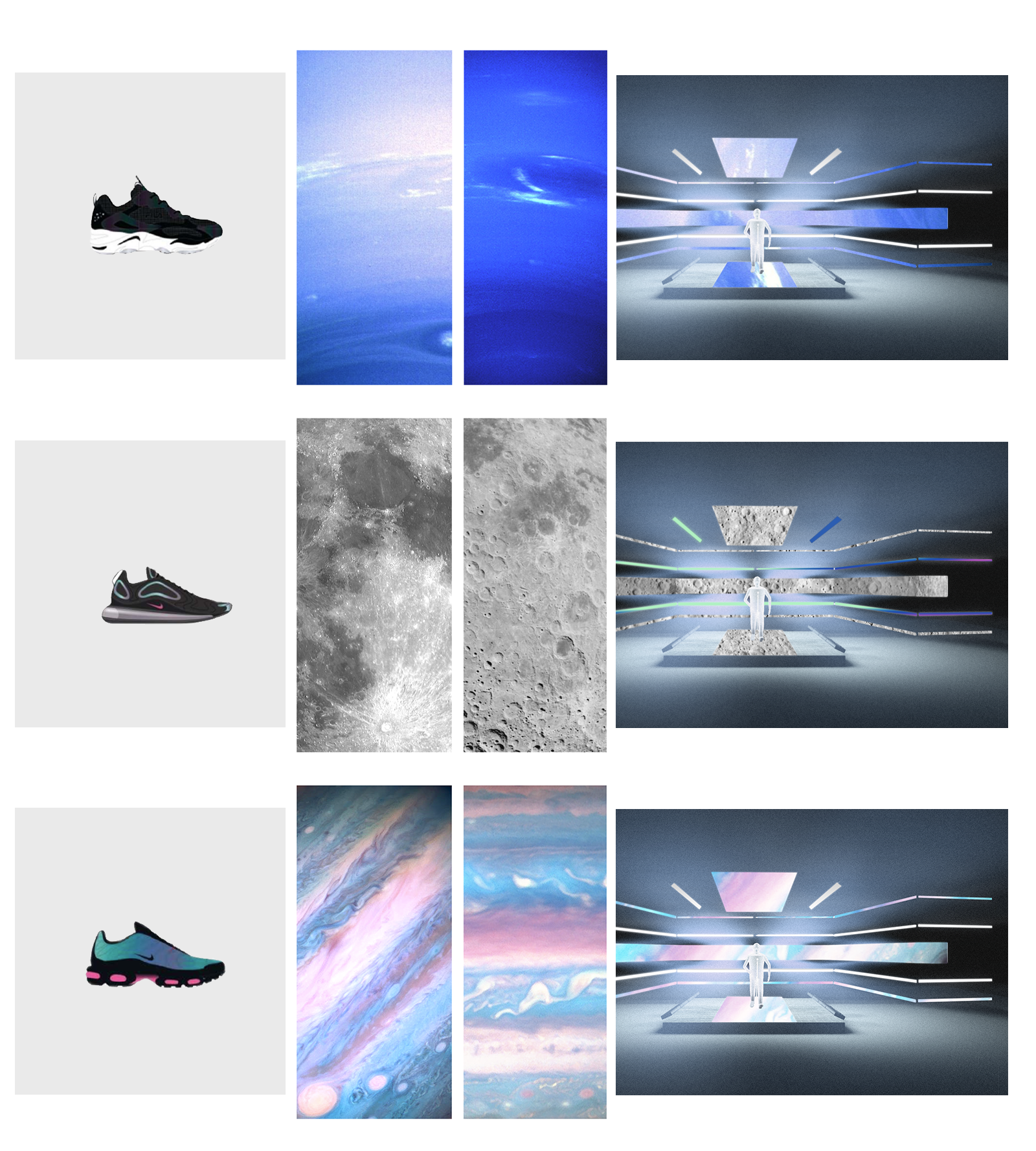 Foot Locker wanted to reclaim its position as an authority in sneaker culture. Something easier said than done as it requires a shift from thinking in product sales, to thinking in cultural contribution. During the year they’ll have a series of theme driven sneaker collection drops in this particular case, space. A theme loosely based on the iridescence nature of some of the shoes.